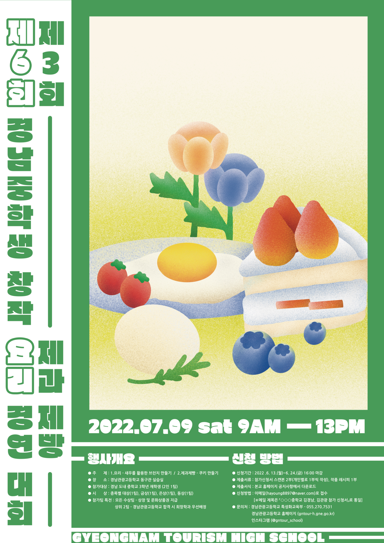 경남 관광고등학교에서 제 6회 경남 중학생 창작 요리 경연대회 및 제 3회 중학생 창작 제과제빵 경연대회를 개최합니다.